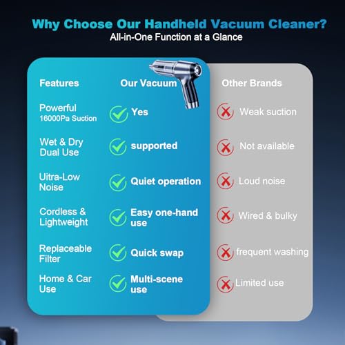 • Powerful 18000Pa Suction Our handheld vacuum cordless hand rechargeable delivers up to 18000Pa of strong suction, easily removing dust, pet hair, crumbs, and debris.