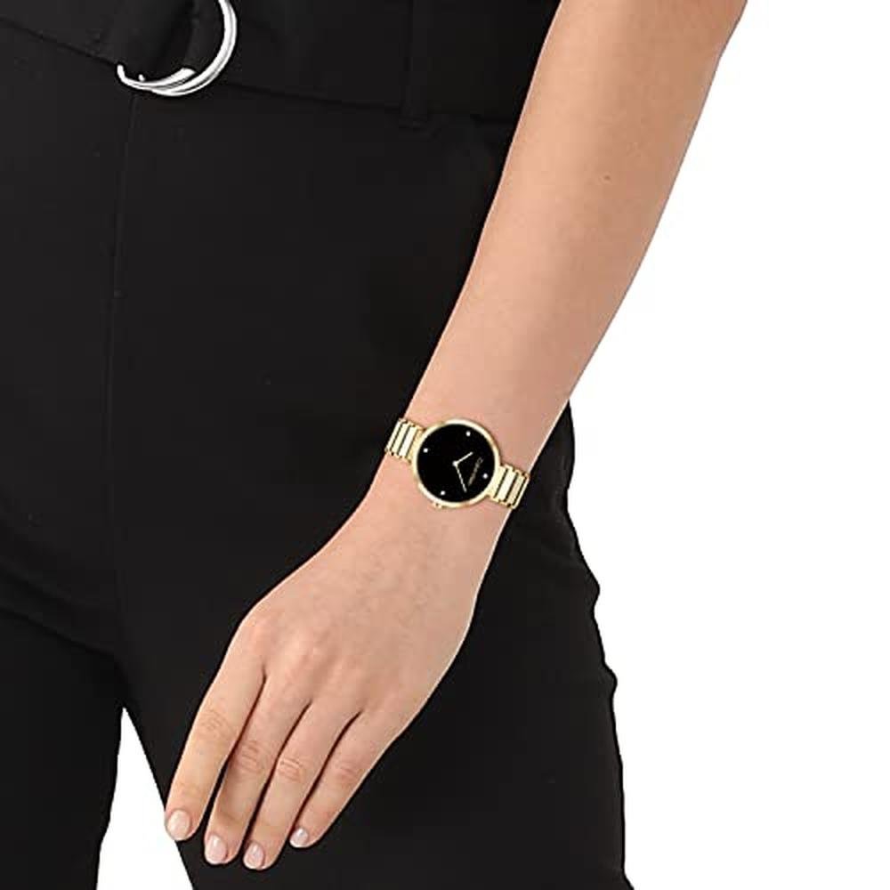 - Comes with a matching ionic plated thin gold steel bracelet, adding to the watch's sleek, minimalist design
