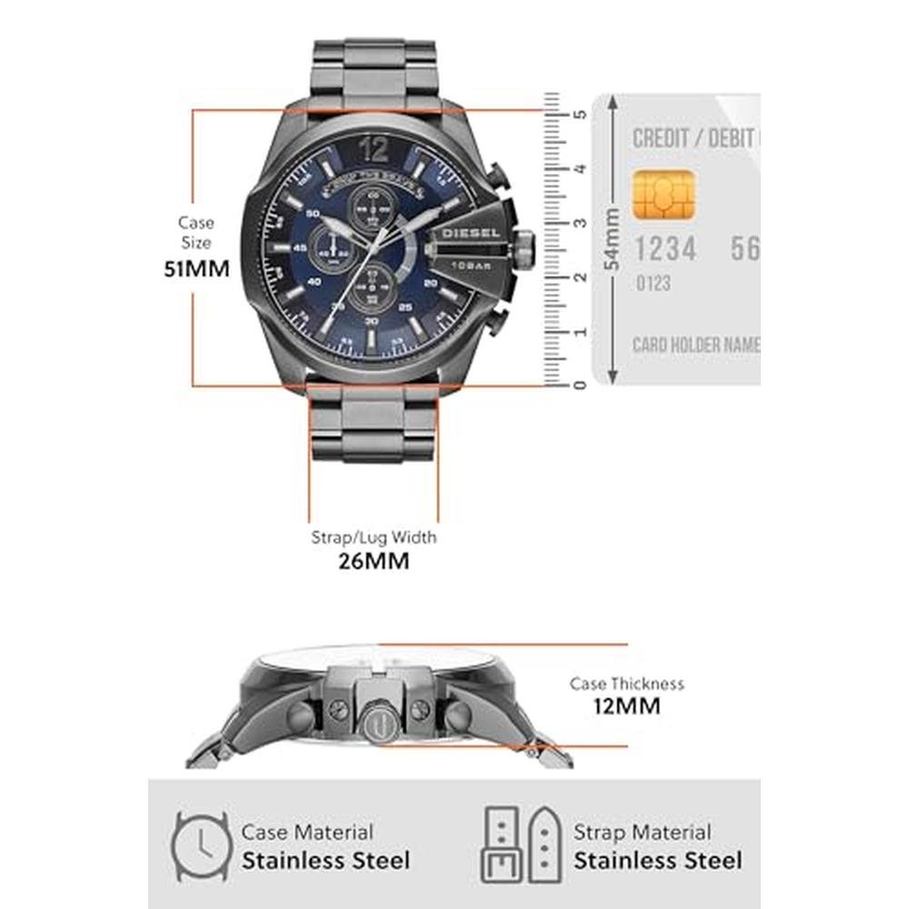 Diesel Mega Chief Stainless Steel Chronograph Men's Watch, Color: Gunmetal (Model: DZ4329)