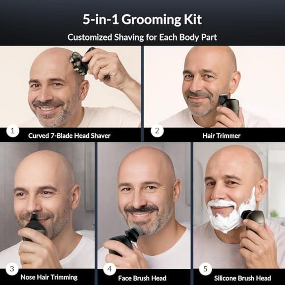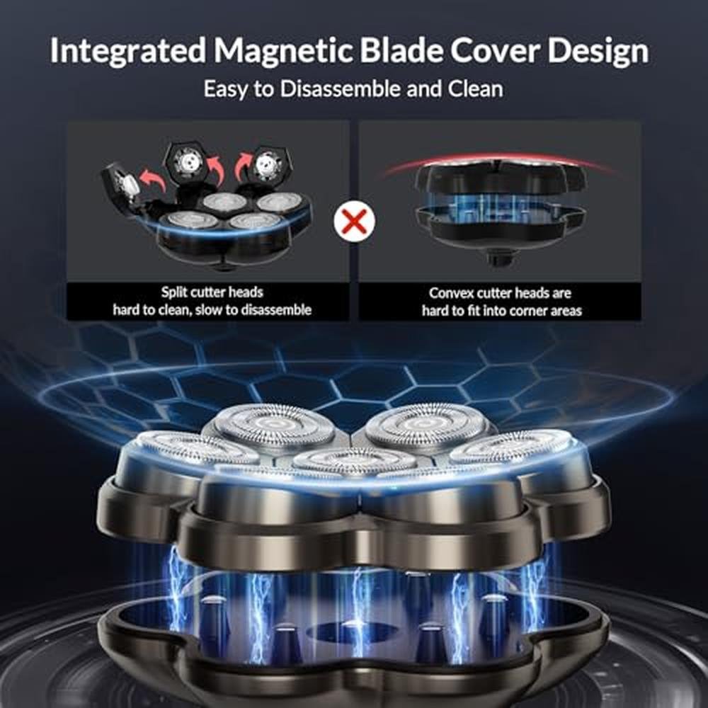 High-End Head Electric Shavers for Bald Men | 7D Arc Magnetic Detachable Electric Razor | Advanced 5-in-1 Shaving & Grooming Kit