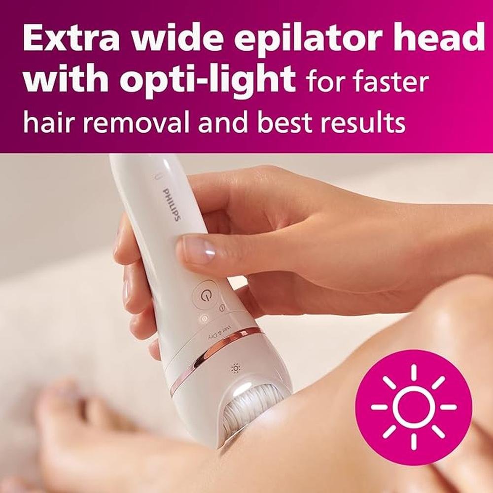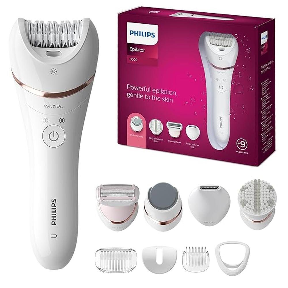 Philips Beauty Epilator Series 8000 5 in 1 Shaver for Women, Trimmer, Pedicure & Body Exfoliator + 9 Accessories, BRE740/14