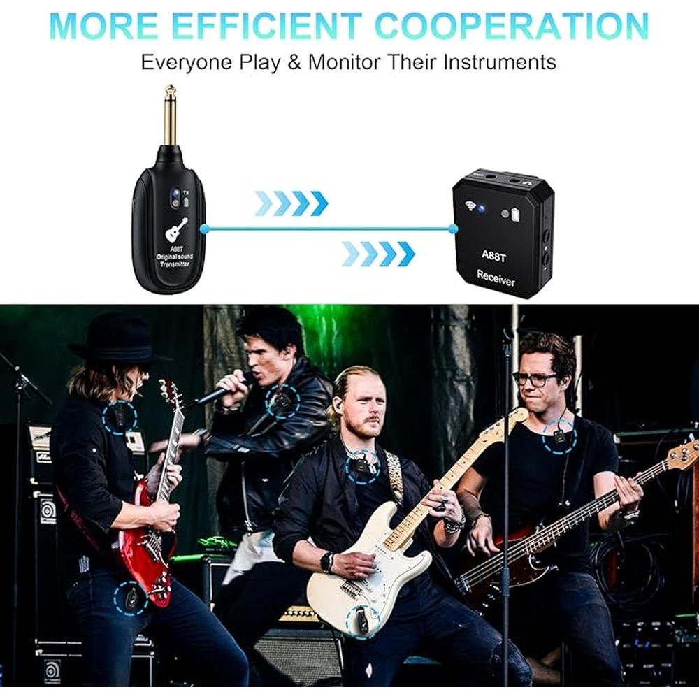 Wireless in Ear Monitor System 2.4GHz Wireless IEM System with Transmitter, Clip on Receiver Auto-Pairing in-Ear Monitoring for Studio, Guitar, DJ, Live Performance (A88T)