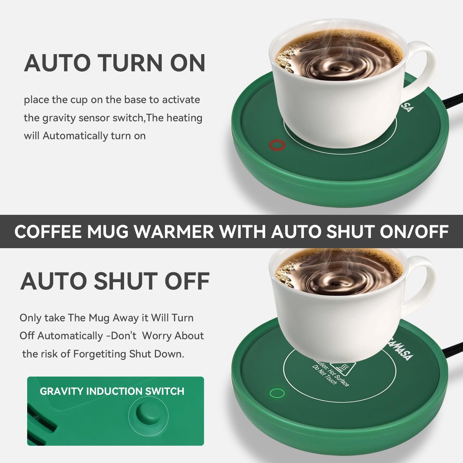 - 【More intelligent and user-friendly design】 The ASAMASA Coffee Mug warmer is equipped with a gravity sensing switch. When your drink or candle is placed on the Mug warmer, the Mug warmer will automatically turn on heating functions. Keeping your coffee at a pleasant temperature. When your drink or candle leaves the Mug warmer, the Mug warmer will automatically turn off the power and stop working. Eliminate safety hazards and save energy for you.
