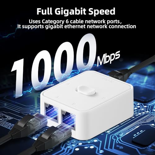 Binardat Gigabit Network Switcher, Passive Ethernet Selector, in/Out to A or B Network, Bidirectional Manual Switcher, No Power Required (White)