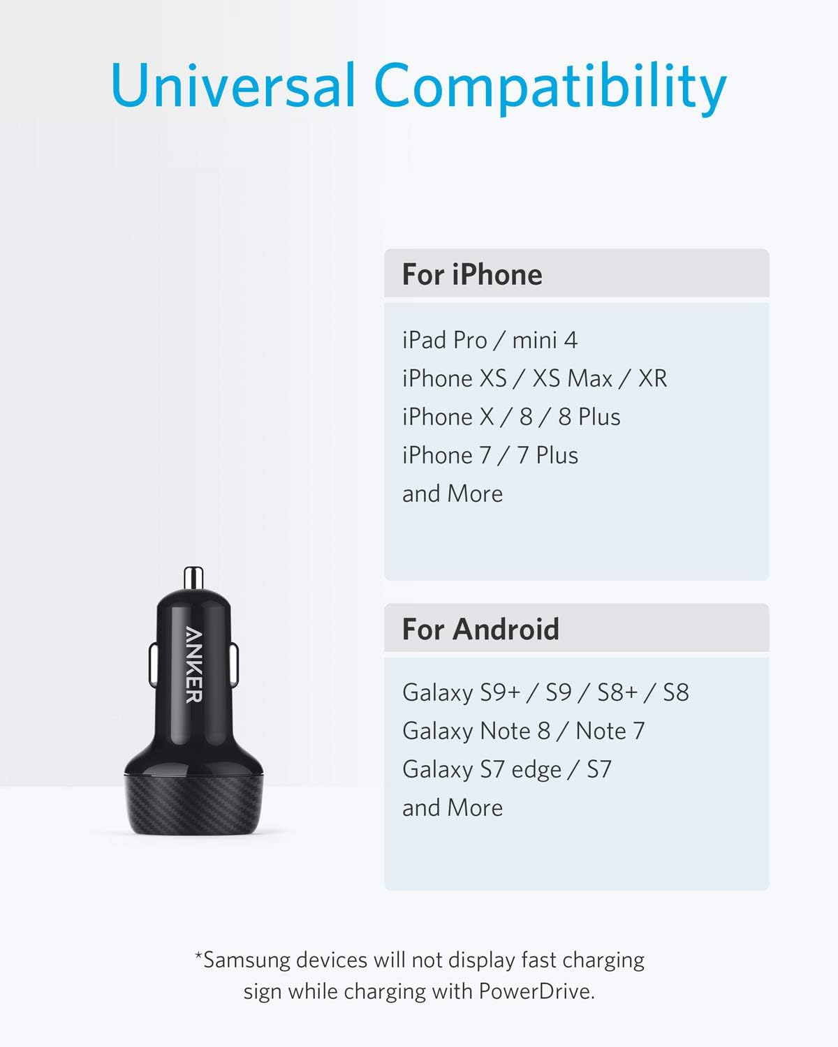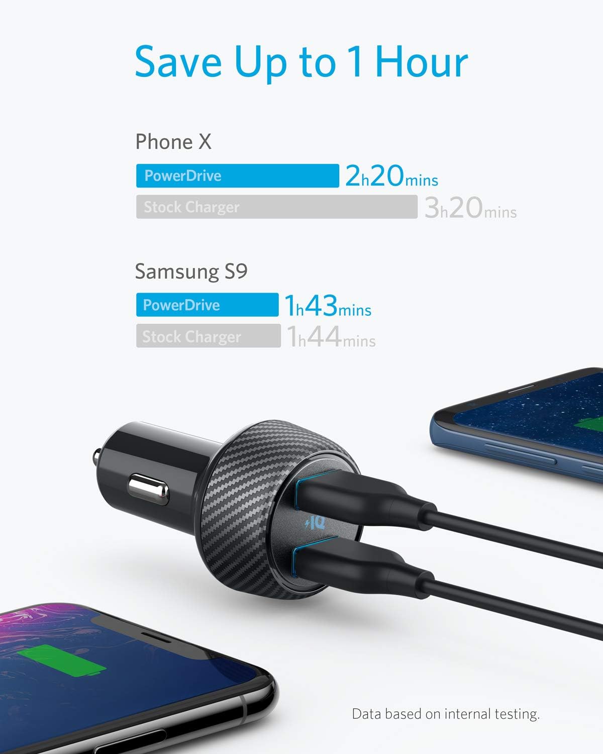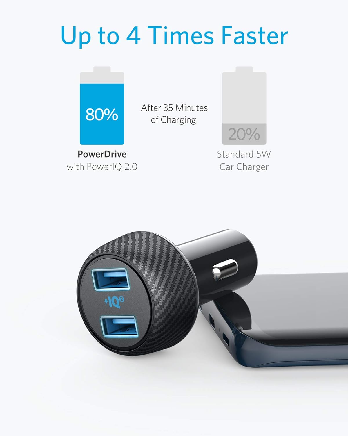 Car Charger | Anker 30W Dual USB PowerDrive Speed 2 with PowerIQ 2.0 | Fast Charging for iPhone and Android