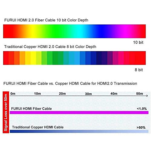 Fiber Cable | FURUI 50ft 4K 60Hz Fiber Optic HDMI Cable 2.0b | HDR10 ARC HDCP2.2 18Gbps