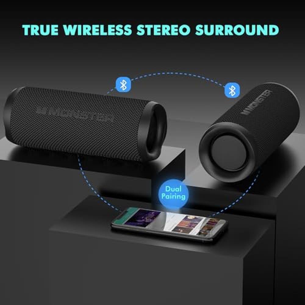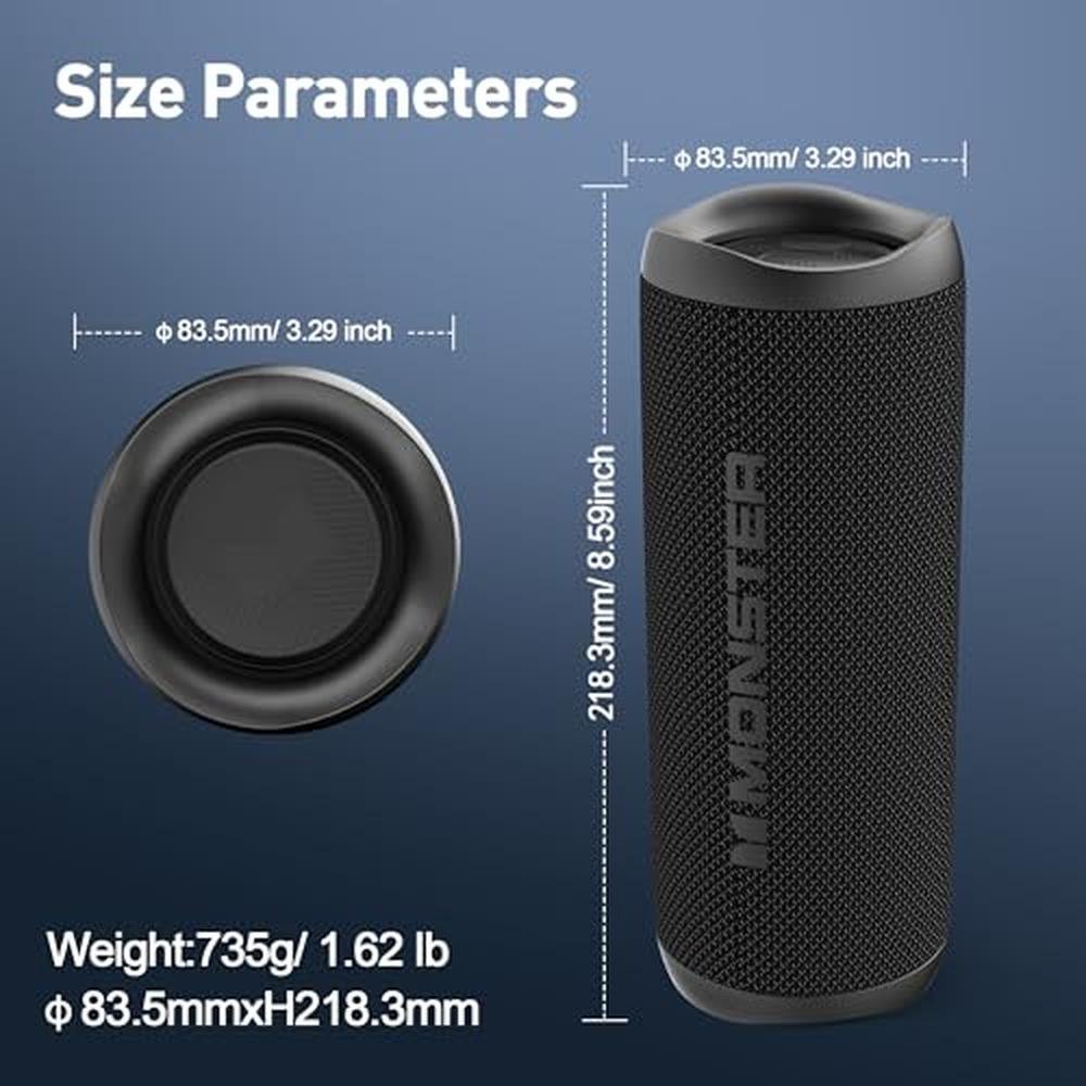 Discover the ultimate in portable sound with the Monster Bluetooth Speaker, a premium wireless speaker that combines advanced technology with sleek design. With its compact size and lightweight design, this speaker is easy to take on the go, and its long-lasting battery life ensures that you can enjoy your music all day long. The Monster Bluetooth Speaker also features Bluetooth 5.4 technology and dual pairing capabilities, making it easy to connect to multiple devices and enjoy seamless sound quality. Whether you're looking for a high-end Bluetooth speaker for outdoor adventures or a superior portable speaker for everyday use, this speaker is the perfect choice.