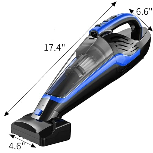 Powools Pet Hair Handheld Vacuum, Car Vacuum Portable Cordless Rechargeable with Reusable Filter and Motorized Brush for Carpet, Couch & Stairs, Blue, 17.4"X 4.6"X 6.6"