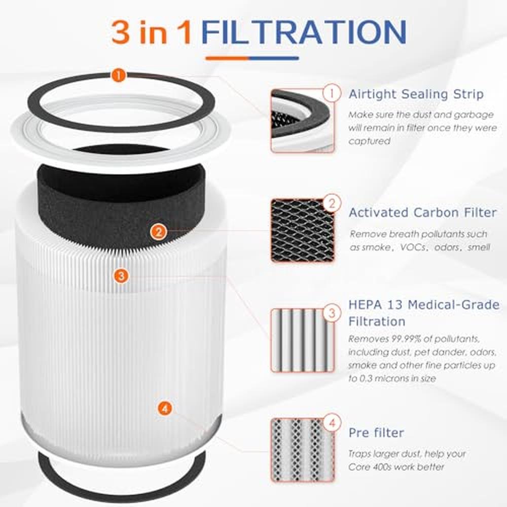 Core 400S Replacement Filter | LEVOIT Core 400S 3-in-1 True H13 HEPA Activated Carbon Pre-Filter | Upgrade Your Air Purification Experience