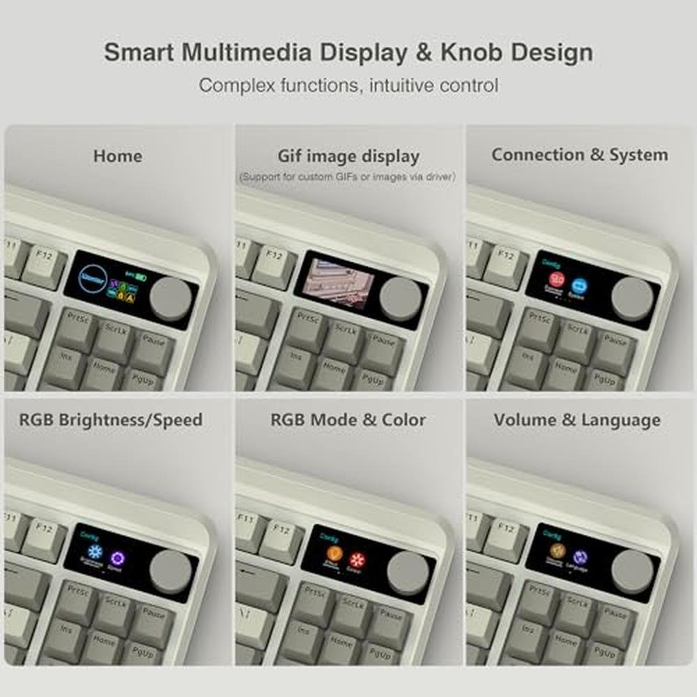 - This sophisticated keyboard boasts hot-swappable custom switches, allowing for a personalized typing experience, and is complemented by a stunning Color OLED Display and Knob.