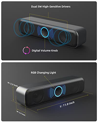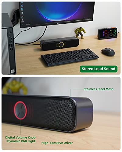 YOFANQI USB Computer Speakers for Desktop, Laptop, PC Gaming Speakers, Small Computer Sound Bar with Stereo Loud Sound, Enhanced Bass, Dynamic RGB Light, Digital Volume Knob