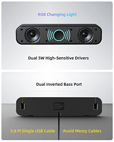 Special Feature | Direct Volume Control, 10W Stereo Loud Sound, [True] USB Speakers, Plug-n-Play, Dynamic RGB Light |
